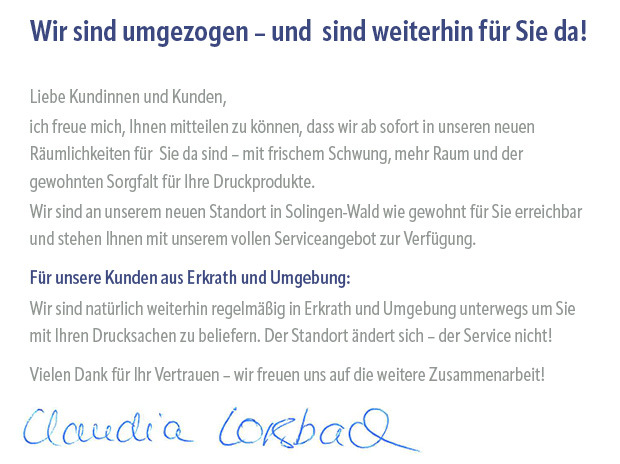 Ihrer Druckerei aus Erkrath / Düsseldorf im Rheinland - jetzt in Solingen